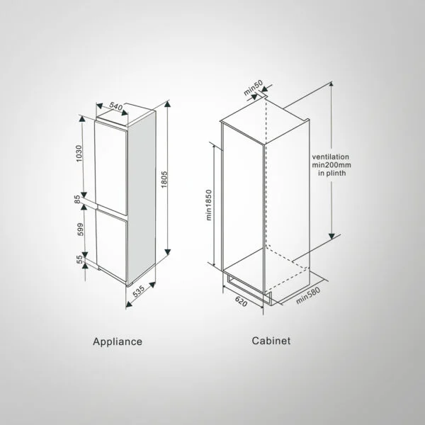- Size (W x D x H): 535 x 540 x 1805 mm (relatively tall and narrow design)